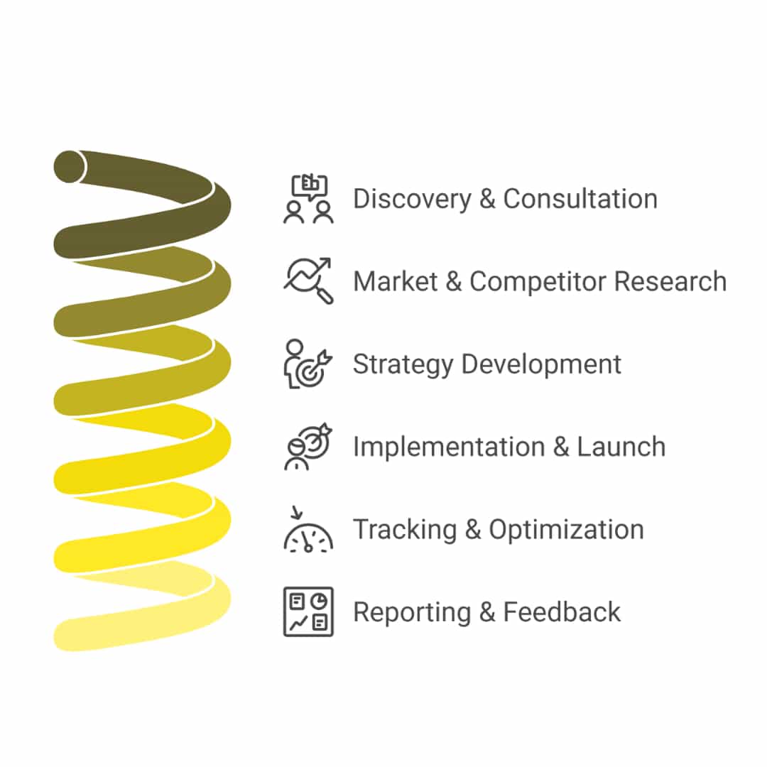 We follow a structured and strategic approach to help educational institutions grow their online presence and reach the right students. Our process is built on research, creativity, and continuous optimization.